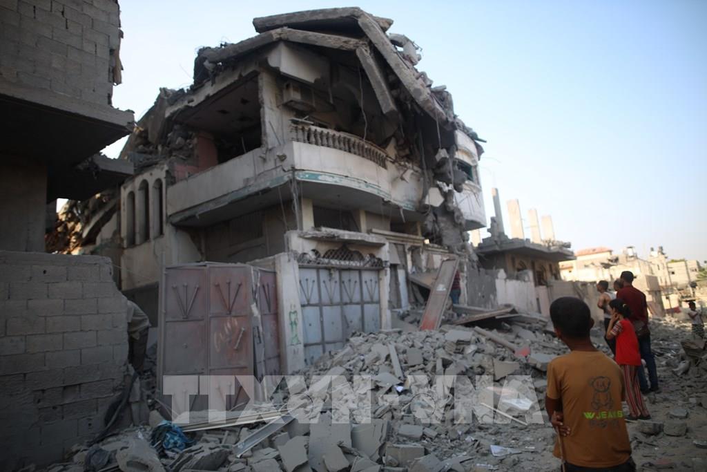 Ngày 24/7/2024, các lực lượng của Israel đã tiến hành các hoạt động quân sự mới trên khắp Dải Gaza. Theo người dân địa phương, các cuộc tấn công mới nhất này đã phá hủy nhiều nhà cửa ở thị trấn phía Đông thành phố Khan Younis thuộc phía Nam Gaza. Ảnh: Hiện trường đổ nát sau các cuộc không kích của Israel xuống Dải Gaza ngày 23/7/2024. THX/TTXVN