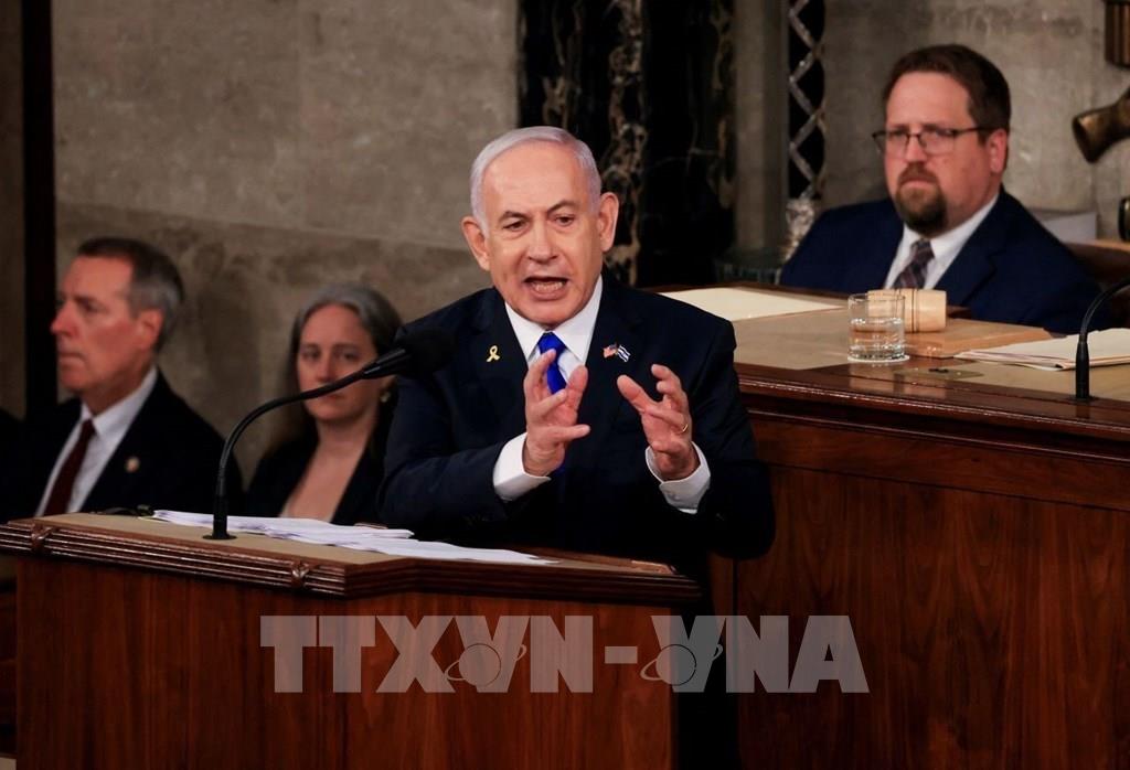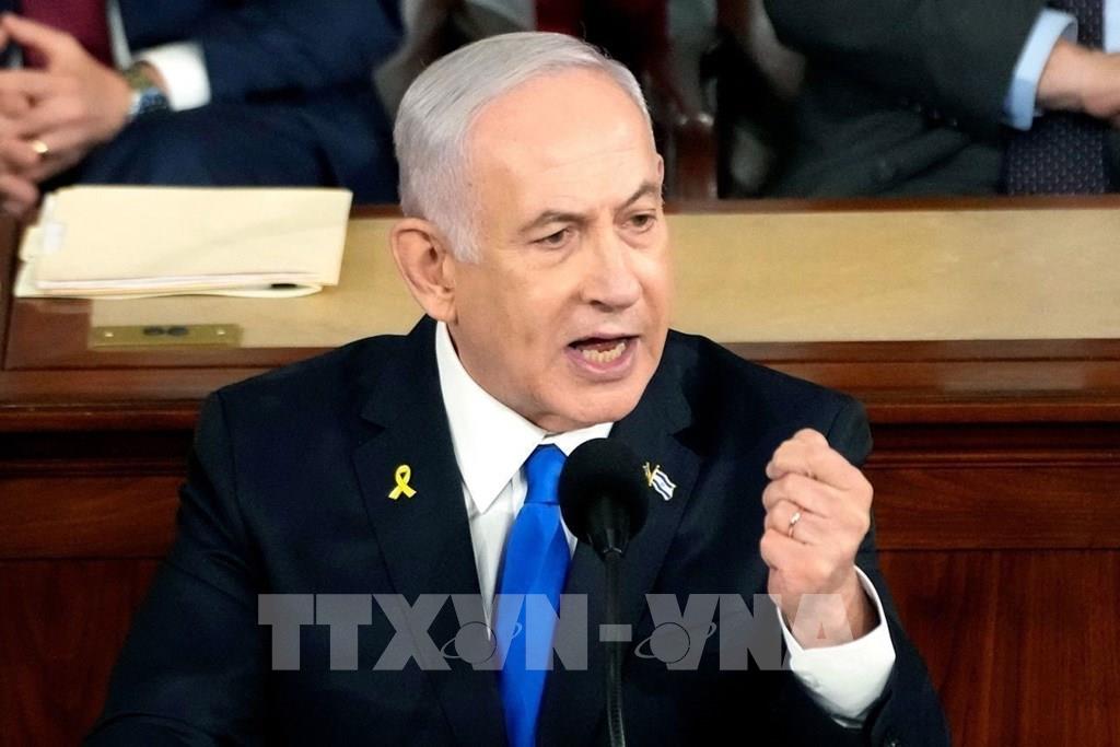 Ngày 24/7/2024, Thủ tướng Israel Benjamin Netanyahu (ảnh), đang ở thăm Mỹ, đã có bài phát biểu trước các nhà lập pháp Mỹ, trong đó phác thảo ra một kế hoạch nhằm “phi quân sự hóa” và “phi cực đoan hóa” Dải Gaza hậu xung đột cũng như khả năng về một liên minh quân sự trong tương lai giữa Israel và các đồng minh Arab của Mỹ. Ảnh: Getty Images/TTXVN
