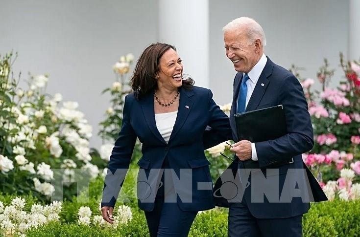 Ngày 21/7/2024, Tổng thống Mỹ Joe Biden (phải) đã bất ngờ tuyên bố rút lui khỏi chiến dịch tái tranh cử Tổng thống năm 2024, đồng thời ủng hộ Phó Tổng thống Kamala Harris (trái) thay ông gánh vác trọng trách làm ứng cử viên của đảng Dân chủ trong cuộc đua vào Nhà Trắng. Trong một phát biểu, bà Harris bày tỏ mong đợi sớm được chính thức nhận đề cử của đảng Dân chủ. Ảnh: White House/TTXVN