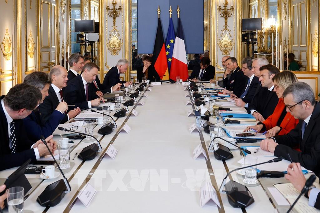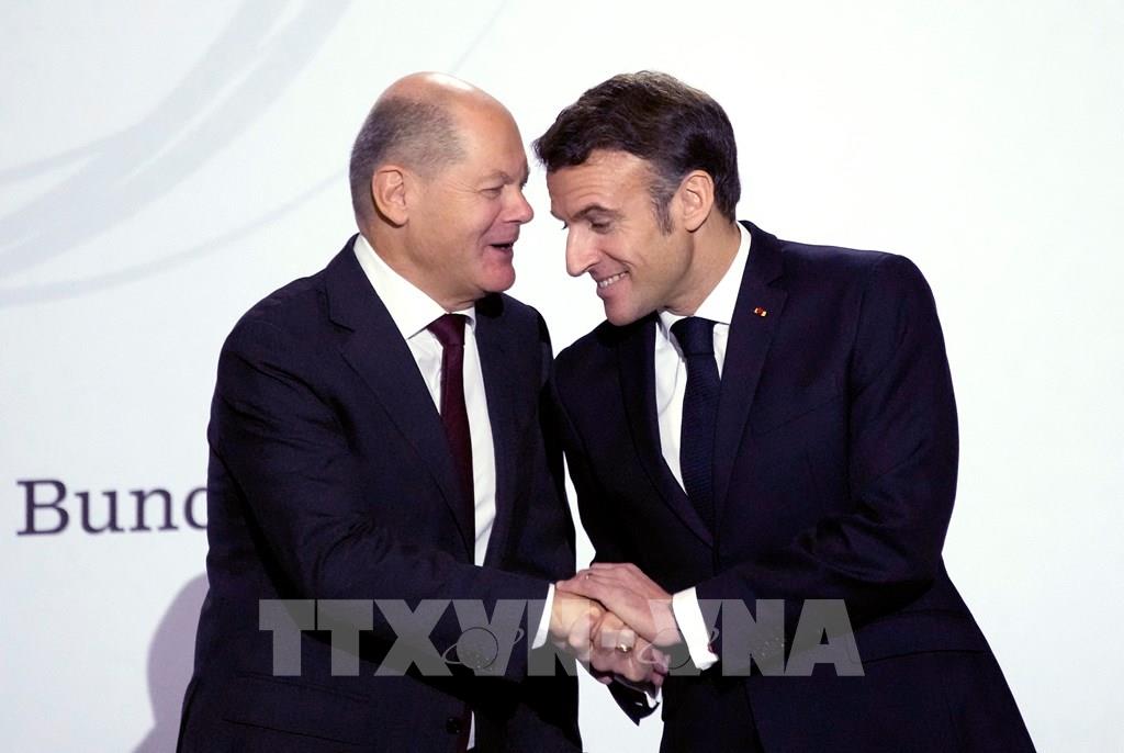 Pháp và Đức nên cùng nhau trở thành "những quốc gia tiên phong" trong công cuộc xây dựng lại châu Âu. Tổng thống Pháp Emmanuel Macron ngày 22/1/2023 đã đưa ra lời kêu gọi trên tại lễ kỷ niệm 60 năm Pháp và Đức ký hiệp ước hợp tác thời hậu chiến diễn ra ở thủ đô Paris. Về phần mình, Thủ tướng Đức Olaf Scholz cho rằng tương lai của châu Âu phụ thuộc vào "động lực dẫn dắt" của Đức và Pháp. Ảnh: AFP/ TTXVN