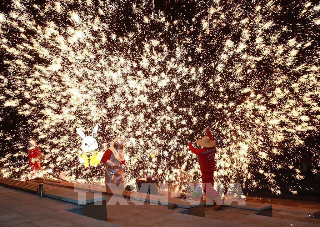 Tết Nguyên đán là nét văn hóa truyền thống lâu đời, không thể thiếu trong đời sống của người dân nhiều quốc gia châu Á. Đây là dịp để các thành viên trong gia đình cùng sum họp, đón chào năm mới với hy vọng bình an và hạnh phúc. Sau gần 3 năm chống chọi với đại dịch COVID-19, người dân tại nhiều quốc gia hân hoan đón Tết cổ truyền Quý Mão 2023. Trong ảnh: Trình diễn pháo hoa đón Tết Nguyên đán tại tỉnh Giang Tô, Trung Quốc, ngày 22/1/2023. Ảnh: THX/ TTXVN