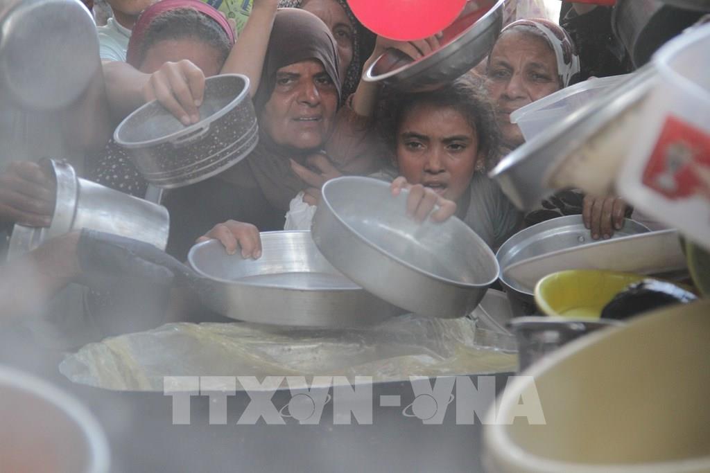 Báo The National News của Các Tiểu vương quốc Arab Thống nhất (UAE) ngày 25/12/2024 dẫn các nguồn tin thạo tin cho biết các cuộc đàm phán ngừng bắn ở Gaza do Ai Cập và Qatar tổ chức đang rơi vào bế tắc, làm tiêu tan hy vọng về một thỏa thuận ngừng bắn trong tầm tay nhằm chấm dứt cuộc chiến dai dẳng tại dải đất ven Địa Trung Hải của Palestine. Trong ảnh: Người dân chờ đợi được phát bữa ăn cứu trợ tại trại tị nạn Jabalia, Dải Gaza. Ảnh: THX/TTXVN