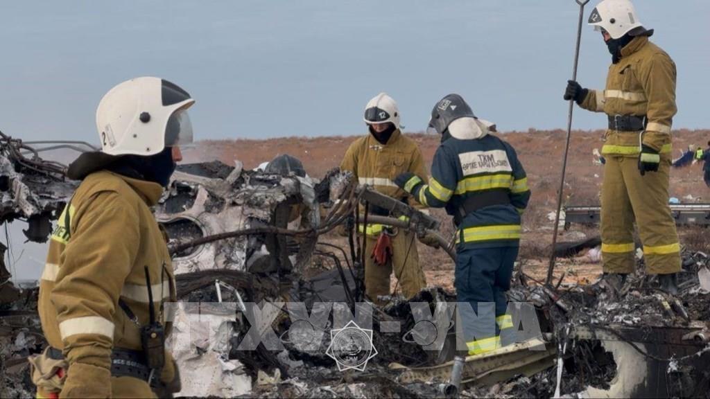 Chiếc máy bay Embraer 190 của hãng hàng không Azerbaijan Airlines, bay từ Baku đến Grozny (Nga), đã gặp nạn sáng 25/12/2024 gần thành phố Aktau ở miền Tây Kazakhstan, khiến 38 người thiệt mạng. Trên máy bay có 62 hành khách và 5 thành viên phi hành đoàn. Ảnh: THX/TTXVN