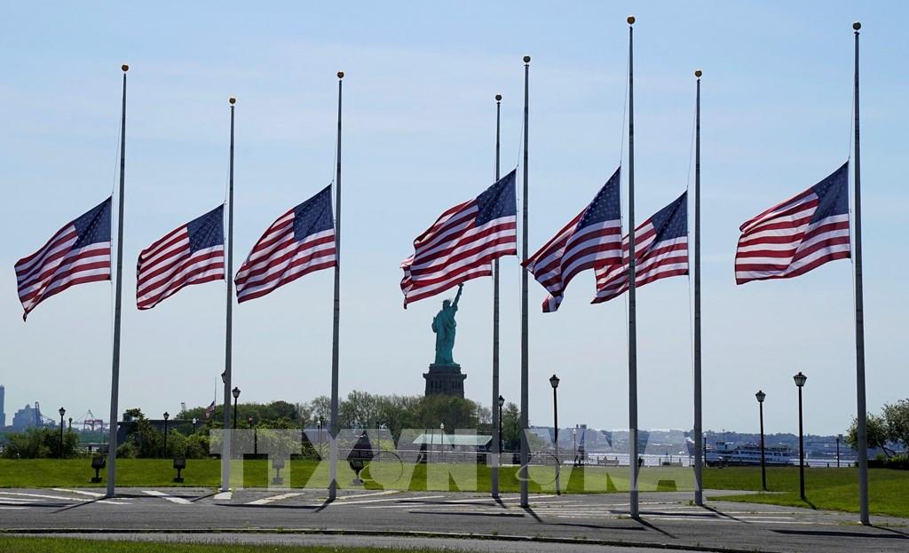 Ít nhất 21 người, trong đó có 18 học sinh, đã thiệt mạng trong vụ xả súng kinh hoàng ngày 24/5/2022 tại trường tiểu học Robb ở thị trấn Uvalde của bang Texas (Mỹ). Thủ phạm được xác định là Salvador Ramos, 18 tuổi, học sinh hoặc cựu học sinh của trường phổ thông trung học Uvalde. Lực lượng an ninh đã tiêu diệt đối tượng tại chỗ. Trong ảnh: Treo cờ rủ tưởng niệm các nạn nhân của vụ xả súng tại trường tiểu học Robb, ở New Jersey, Mỹ. Ảnh: AFP/ TTXVN
