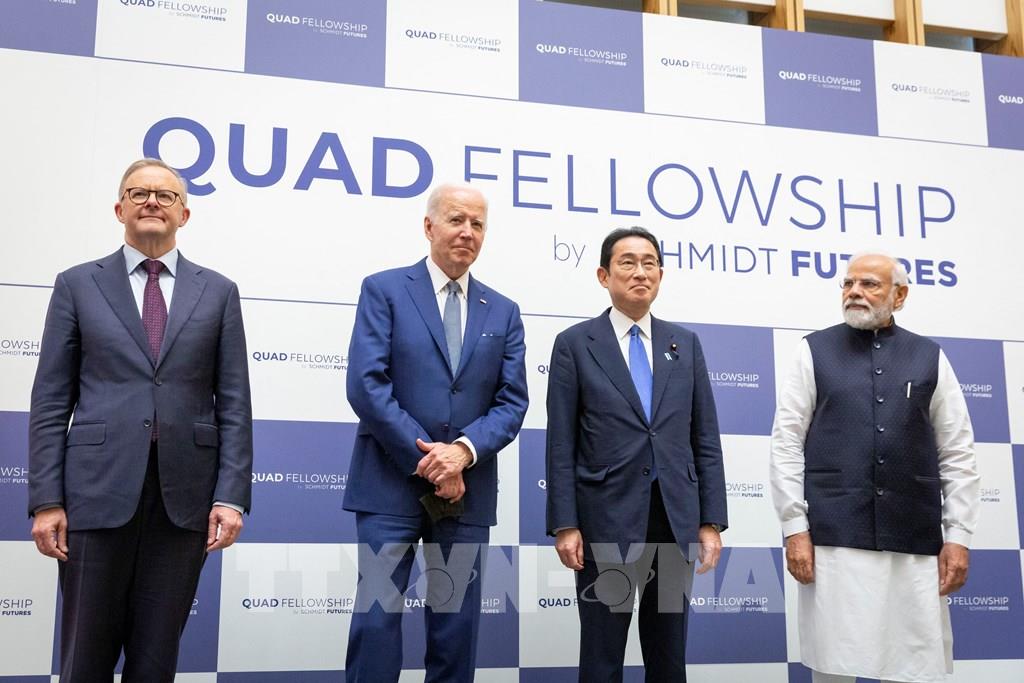 Ngày 24/5/2022, kết thúc Hội nghị Thượng đỉnh nhóm Bộ Tứ ở Tokyo (Nhật Bản), các nhà lãnh đạo 4 nước Nhật Bản, Mỹ, Australia và Ấn Độ đã ra tuyên bố chung tái khẳng định “ủng hộ một cách kiên định đối với sự đoàn kết và vai trò trung tâm của Hiệp hội các quốc gia Đông Nam Á (ASEAN), cũng như việc triển khai trên thực tế Tầm nhìn ASEAN về Ấn Độ Dương-Thái Bình Dương (AOIP)”. Ảnh: THX/TTXVN