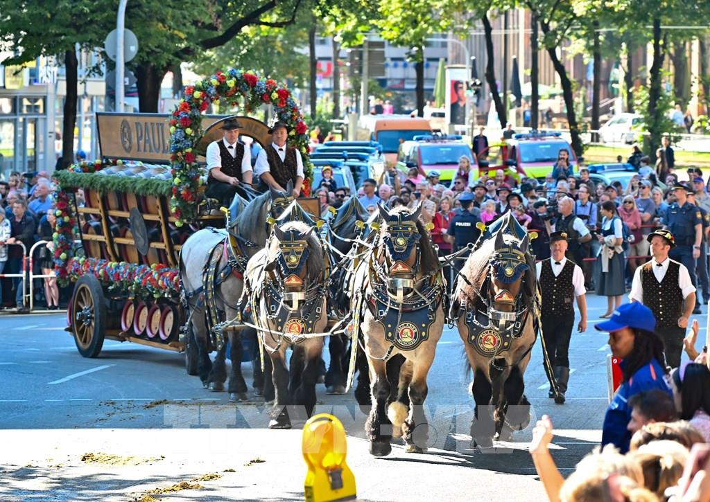 Ngày 21/9/2024, Lễ hội bia Đức (Oktoberfest), lễ hội bia lớn nhất thế giới, đã khai mạc tại thành phố Munich trong điều kiện an ninh được thắt chặt sau nhiều vụ tấn công được cho là do các phần tử thánh chiến thực hiện tại Đức. Ảnh: THX/TTXVN