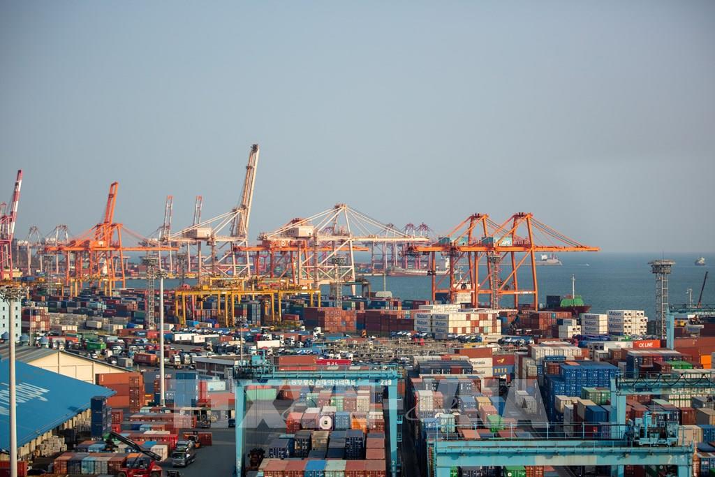 Ngày 25/9/2024, Tổ chức Hợp tác và Phát triển kinh tế (OECD) nâng dự báo tăng trưởng kinh tế toàn cầu năm 2024 và 2025 sẽ ổn định ở mức 3,2% trong bối cảnh lạm phát đang tiếp tục hạ nhiệt và các ngân hàng trung ương từng bước cắt giảm lãi suất. Theo đó, mức dự báo mới cao hơn 0,1% so với mức dự báo cũ (3,1%) được công bố hồi tháng 5 năm nay. Ảnh: Cảng hàng hóa Busan, Hàn Quốc. Ảnh: THX/TTXVN