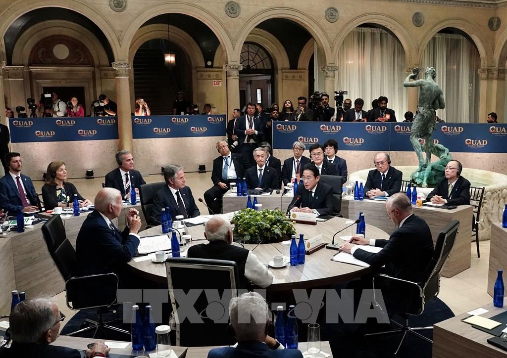 Ngày 21/9/2024, trong tuyên bố chung sau hội nghị thượng đỉnh ở Delaware (Mỹ), các nhà lãnh đạo của nhóm Bộ tứ (Quad) - gồm Australia, Ấn Độ, Nhật Bản và Mỹ, đã nhất trí mở rộng hợp tác về an ninh hàng hải, tập trung vào việc nâng cao khả năng tương tác giữa các lực lượng bảo vệ bờ biển của các nước thành viên. Ảnh: Kyodo/TTXVN