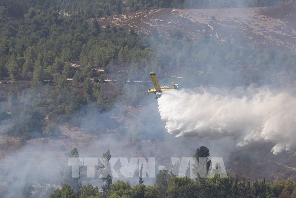 Quân đội Israel thông báo hơn 100 tên lửa đã được bắn từ Liban vào sáng sớm 22/9/2024, trong khi lực lượng cứu hỏa đang dập tắt đám cháy do đạn rơi ở phía Bắc Israel. Ảnh: Trực thăng cứu hỏa dập đám cháy sau khi tên lửa phóng từ Liban rơi xuống miền Bắc Israel. THX/TTXVN