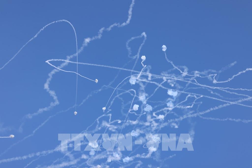 Ngày 25/9/2024, Mỹ, Liên minh châu Âu (EU) và một số quốc gia Arab đã đưa ra lời kêu gọi chung về một "lệnh ngừng bắn tạm thời" tại Liban. Ảnh: Hệ thống phòng không Israel đánh chặn các tên lửa phóng từ Liban. THX/TTXVN
