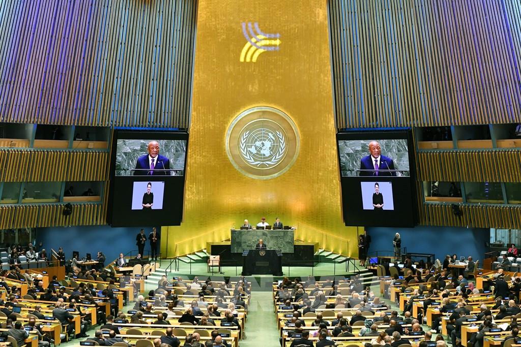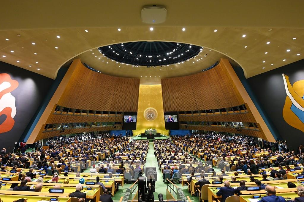 Ngày 22/9/2024, với đa số ý kiến tán thành, các thành viên LHQ đã thông qua "Hiệp ước cho tương lai" nhằm giải quyết hàng loạt cuộc xung đột, các mối đe dọa về môi trường, cũng như những thách thức công nghệ mà nhân loại đang phải đối mặt. Việc thông qua hiệp ước diễn ra trong khuôn khổ sự kiện mở màn Tuần lễ cấp cao Đại hội đồng LHQ khóa 79 tại New York (Mỹ). Ảnh: THX/TTXVN