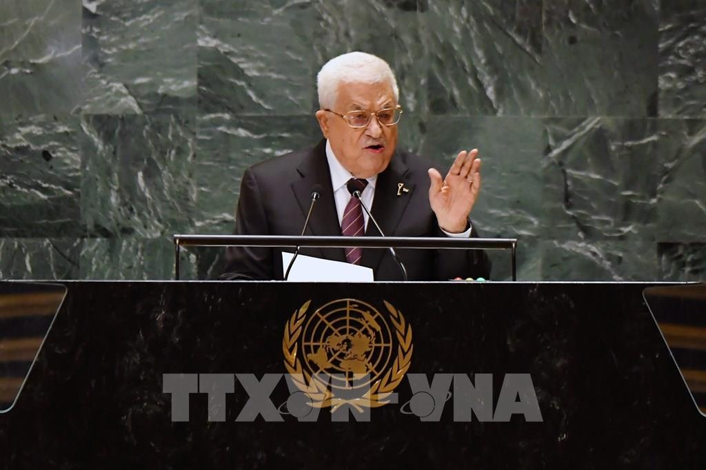 Ngày 26/9/2024, phát biểu trước Đại hội đồng LHQ tại New York (Mỹ), Tổng thống Palestine Mahmud Abbas đã hối thúc ĐHĐ LHQ giúp chấm dứt cuộc xung đột giữa Israel và Hamas, đồng thời kêu gọi cộng đồng quốc tế ngừng gửi vũ khí cho Israel để ngăn chặn đổ máu ở Bờ Tây và Dải Gaza. Ảnh: THX/TTXVN