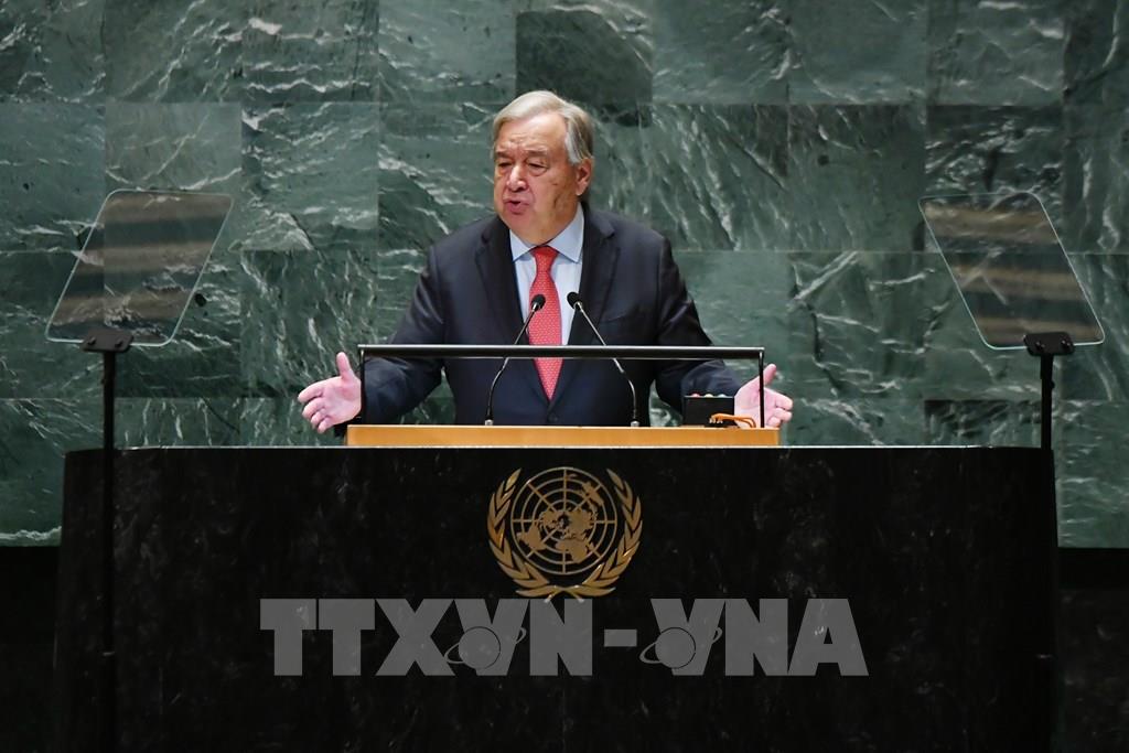 Ngày 24/9/2024, tại Phiên thảo luận chung cấp cao ĐHĐ LHQ khóa 79 ở New York (Mỹ), Tổng thư ký LHQ Antonio Guterres (ảnh) kêu gọi các giải pháp toàn cầu kịp thời trong bối cảnh thế giới đang đối mặt với những thách thức chưa từng thấy và tình trạng chia rẽ địa chính trị ngày càng sâu sắc. Ảnh: THX/TTXVN