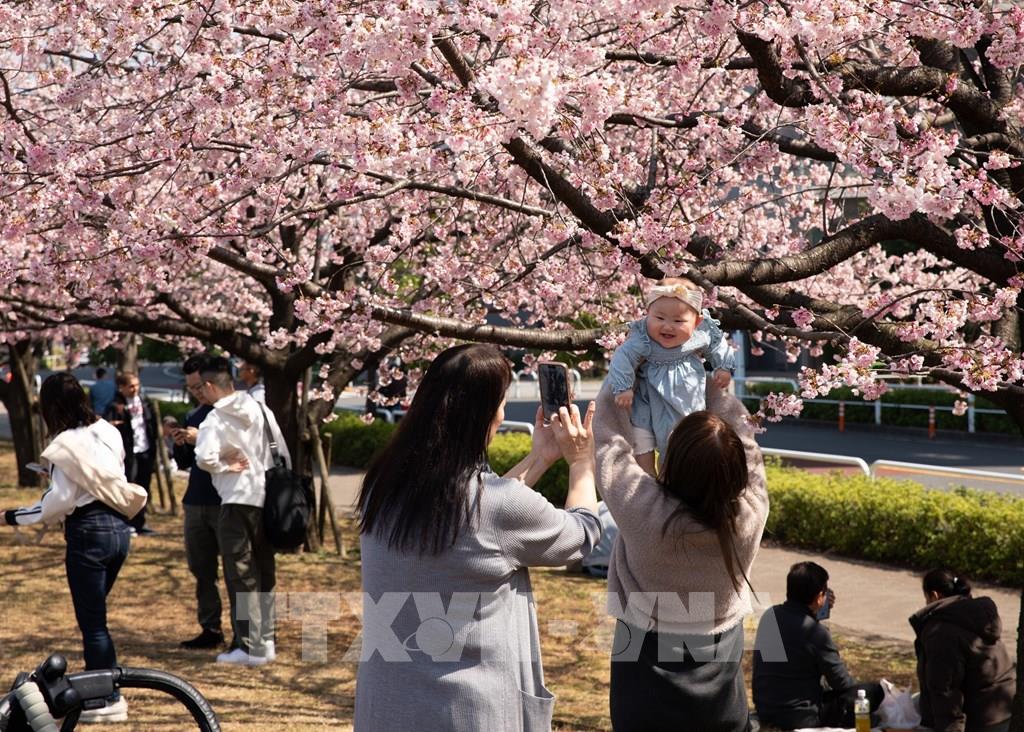 Cuối tháng 3, đầu tháng 4 hàng năm, khi những tia nắng ấm áp của mùa Xuân đánh thức nụ hoa anh đào, cũng là lúc người dân bắt đầu hoà mình vào những lễ hội ngắm hoa – Hanami tại nhiều khu vực ở Tokyo. Theo truyền thống, đây là dịp để gia đình người dân Nhật Bản đoàn tụ, quây quần bên nhau, cùng ăn uống, thưởng trà, ngắm hoa anh đào và cầu chúc mọi điều tốt đẹp trong tài khoá mới. Ảnh: Xuân Giao – PV TTXVN