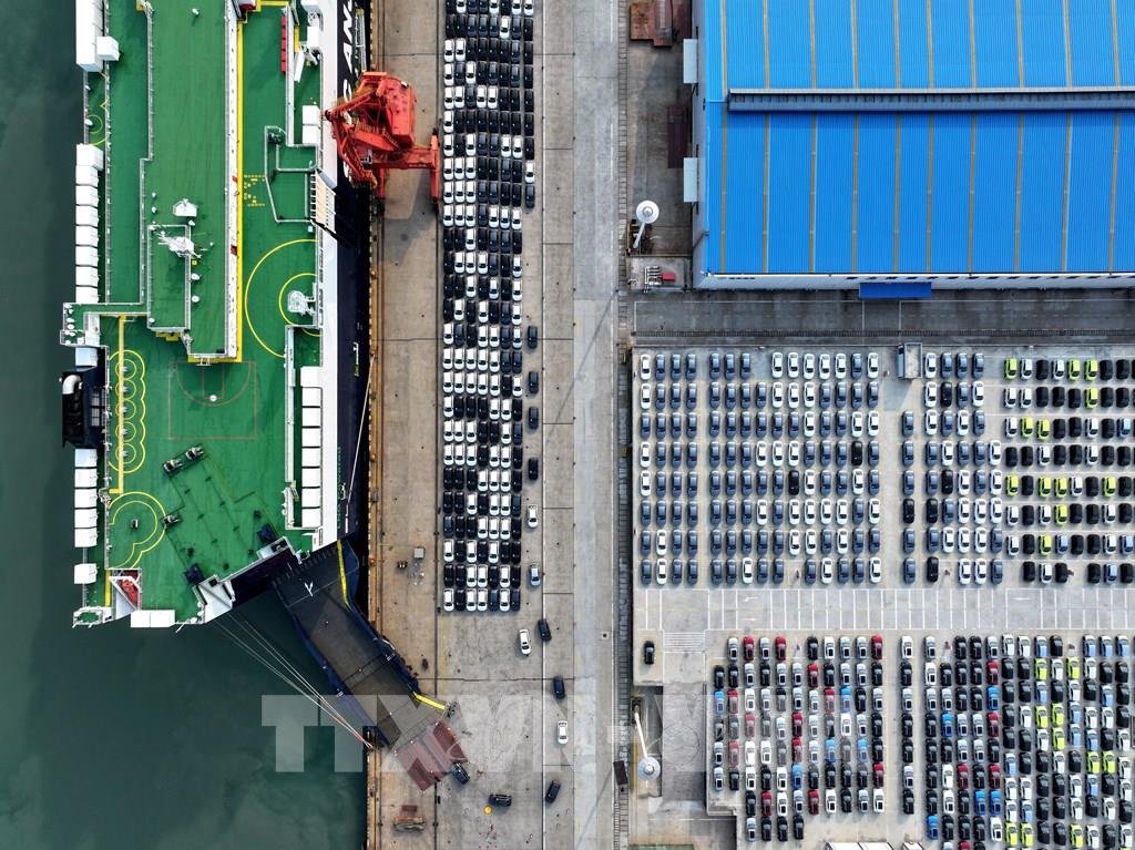 Tổng thống Mỹ Donald Trump ngày 26/3/2025 thông báo quyết định áp thuế lên tới 25% đối với ô tô nhập khẩu - điều mà ông đã cam kết từ lâu với các cử tri Mỹ. Phát biểu tại một sự kiện ở Phòng Bầu dục, Tổng thống Trump nói thêm rằng nếu các hãng sản xuất xe tại Mỹ thì sẽ không phải chịu thuế. Quyết định áp thuế này sẽ có hiệu lực từ ngày 2/4 tới. Trong ảnh: Xe ô tô chờ xuất khẩu tại cảng ở tỉnh Giang Tô, Trung Quốc. Ảnh: THX/TTXVN