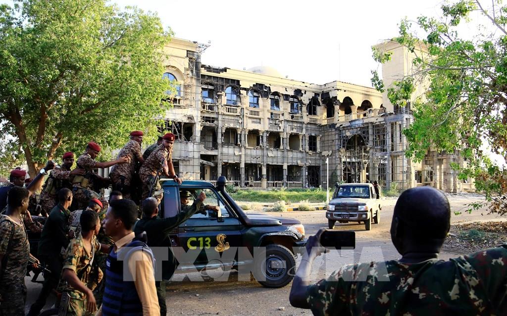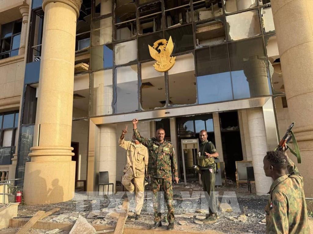 Ngày 26/3/2025, Tổng tư lệnh quân đội Sudan (SAF) Abdel Fattah al-Burhan đã đến Phủ Tổng thống ở Khartoum và chính thức tuyên bố thủ đô đã "được giải phóng" khỏi Lực lượng hỗ trợ nhanh (RSF) bán quân sự. Trong ảnh: Quân đội Sudan (SAF) giành quyền kiểm soát Phủ Tổng thống ở thủ đô Khartoum ngày 21/3/2025. Ảnh: THX/TTXVN