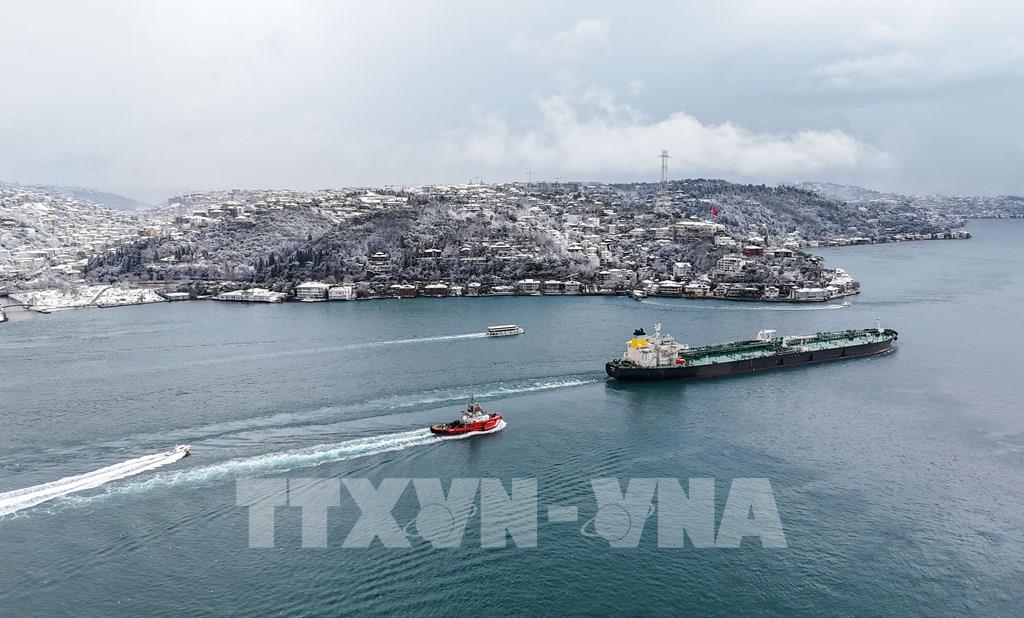 Ngày 25/3/2025, Mỹ thông báo đã đạt được thỏa thuận với Nga và Ukraine để đảm bảo an toàn hàng hải, loại bỏ việc sử dụng vũ lực và ngăn chặn việc sử dụng tàu thương mại cho mục đích quân sự ở Biển Đen. Trong ảnh: Con tàu di chuyển qua Eo biển Bosphorus ở Istanbul, Thổ Nhĩ Kỳ. Ảnh: THX/TTXVN
