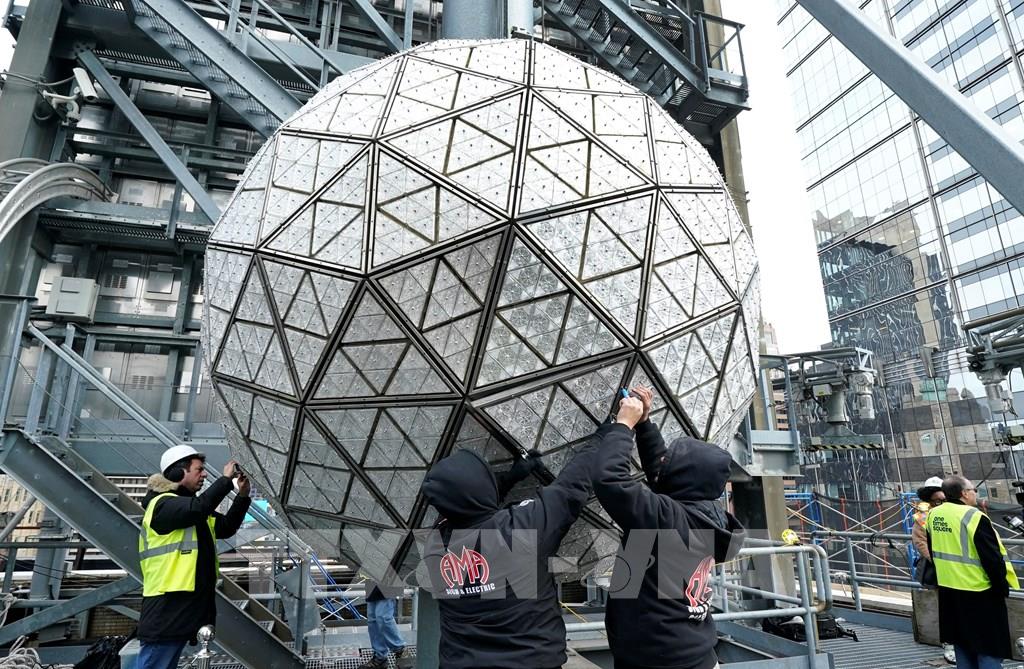Sau 2 năm trải qua đại dịch COVID-19, người dân trên toàn thế giới hân hoan chờ đón Năm Mới 2023 với mong muốn hòa bình, hạnh phúc và bình an. Trong ảnh: Thợ điện lắp ráp quả cầu ánh sáng chào Năm mới 2023 tại Quảng trường Thời đại ở New York, Mỹ ngày 27/12/2022. Ảnh: THX/TTXVN