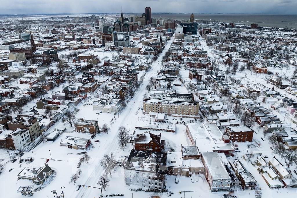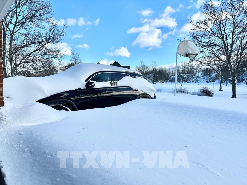 "Trận bão tuyết thế kỷ" tại Mỹ đã khiến ít nhất 50 người thiệt mạng, hơn 1 triệu người rơi vào cảnh mất điện và hàng nghìn chuyến bay bị hoãn, hủy. Trong ảnh: Tuyết phủ dày đặc tại Buffalo, New York, Mỹ, ngày 25/12/2022. Ảnh: AFP/ TTXVN