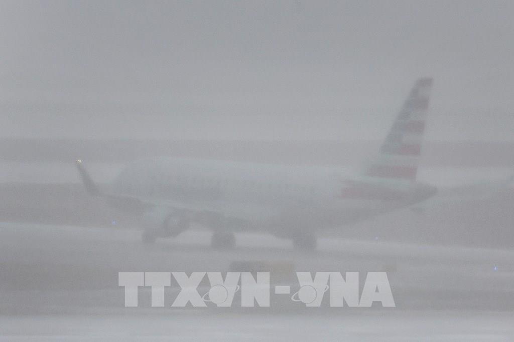 "Trận bão tuyết thế kỷ" tại Mỹ đã khiến ít nhất 50 người thiệt mạng, hơn 1 triệu người rơi vào cảnh mất điện và hàng nghìn chuyến bay bị hoãn, hủy. Trong ảnh: Máy bay cất cánh từ sân bay quốc tế O'Hare ở Chicago, Illinois, Mỹ, trong điều kiện tuyết rơi dày đặc ngày 22/12/2022. Ảnh: AFP/ TTXVN