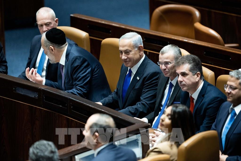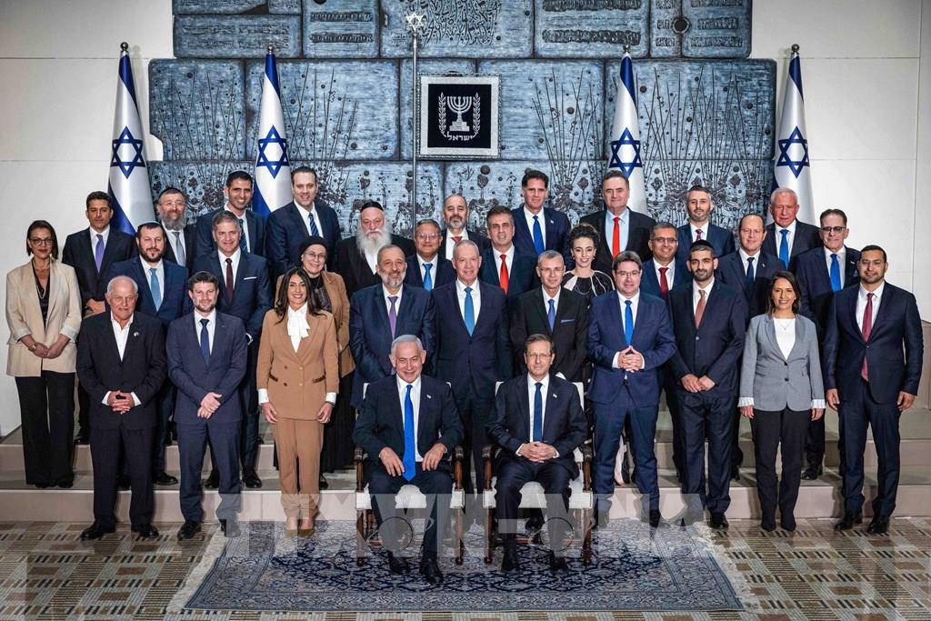 Chính phủ lần thứ 37 của Israel ngày 29/12/2022 đã tuyên thệ nhậm chức, sau khi Quốc hội nước này thông qua với 63 phiếu thuận và 54 phiếu chống trong tổng số 120 nghị sĩ. Đây là Chính phủ thứ 6 do Thủ tướng Benjamin Netanyahu dẫn đầu và là Chính phủ liên minh cánh hữu nhất trong lịch sử nước này. Ảnh: THX/ TTXVN
