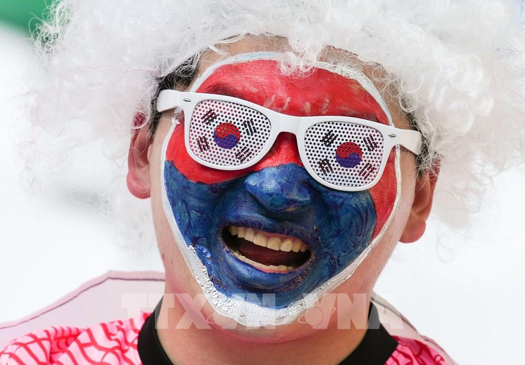 Một yếu tố không thể thiếu góp phần tạo nên không gian văn hoá đặc sắc của World Cup 2022 là hình ảnh ấn tượng về các cổ động viên. Các fan bóng đá đã mang tới đấu trường Qatar những bộ trang phục truyền thống rực rỡ sắc màu với những họa tiết văn hóa dân tộc đặc trưng. Họ mang cả những nụ cười, tình yêu và những giọt nước mắt tiếc nuối khiến ngày hội trở nên giàu cảm xúc. Ảnh: Cổ động viên Hàn Quốc. THX/TTXVN