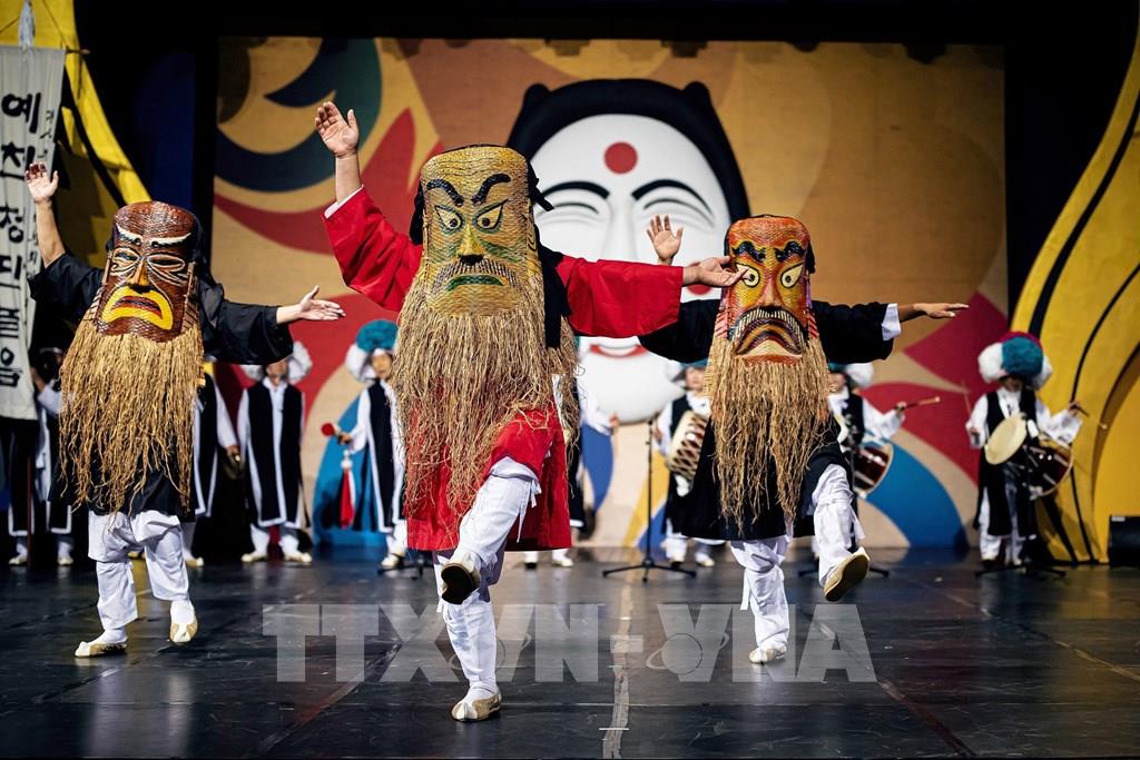 Tổ chức Khoa học, Giáo dục và Văn hóa của Liên hợp quốc (UNESCO) đã quyết định công nhận nghệ thuật múa mặt nạ (talchum) của Hàn Quốc là di sản văn hóa phi vật thể. Múa talchum là một loại hình múa truyền thống khi đeo mặt nạ, kết hợp giữa nhảy múa và diễn kịch. Nghệ thuật này đại diện tiếng nói của công chúng thông qua biểu đạt trào phúng và châm biếm hài hước. Ảnh: YONHAP/TTXVN