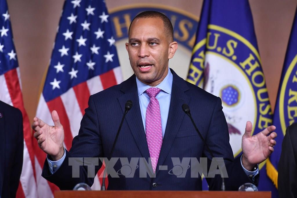 Nghị sĩ Hakeem Jeffries, 52 tuổi, được bầu làm tân lãnh đạo đảng Dân chủ tại Hạ viện Mỹ, trở thành nghị sĩ da màu đầu tiên trong lịch sử được chọn để dẫn dắt một đảng tại Quốc hội Mỹ. Ảnh: AFP/TTXVN