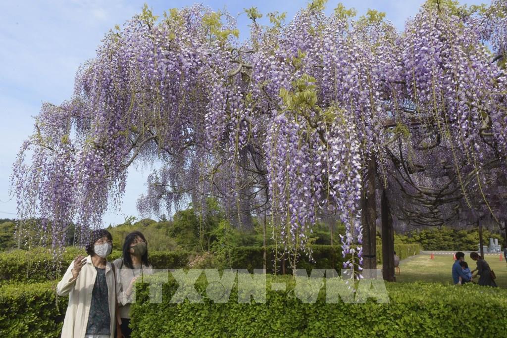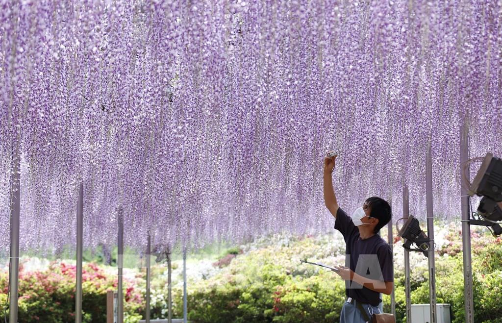 Công viên Ashikaga (tỉnh Tochigi, phía Bắc thủ đô Tokyo) được biết là nơi có vườn hoa Tử đằng lớn nhất Nhật Bản, trong đó có 3 gốc Tử đằng cổ thụ với tán hoa trải rộng hàng trăm mét vuông. Giữa tháng 4 tới đầu tháng 5, hàng trăm nghìn du khách tới công viên để được đắm chìm trong không gian rực rỡ sắc hoa với hương thơm dịu nhẹ từ những cây Tử đằng nở rộ. Ảnh: Kyodo/TTXVN
