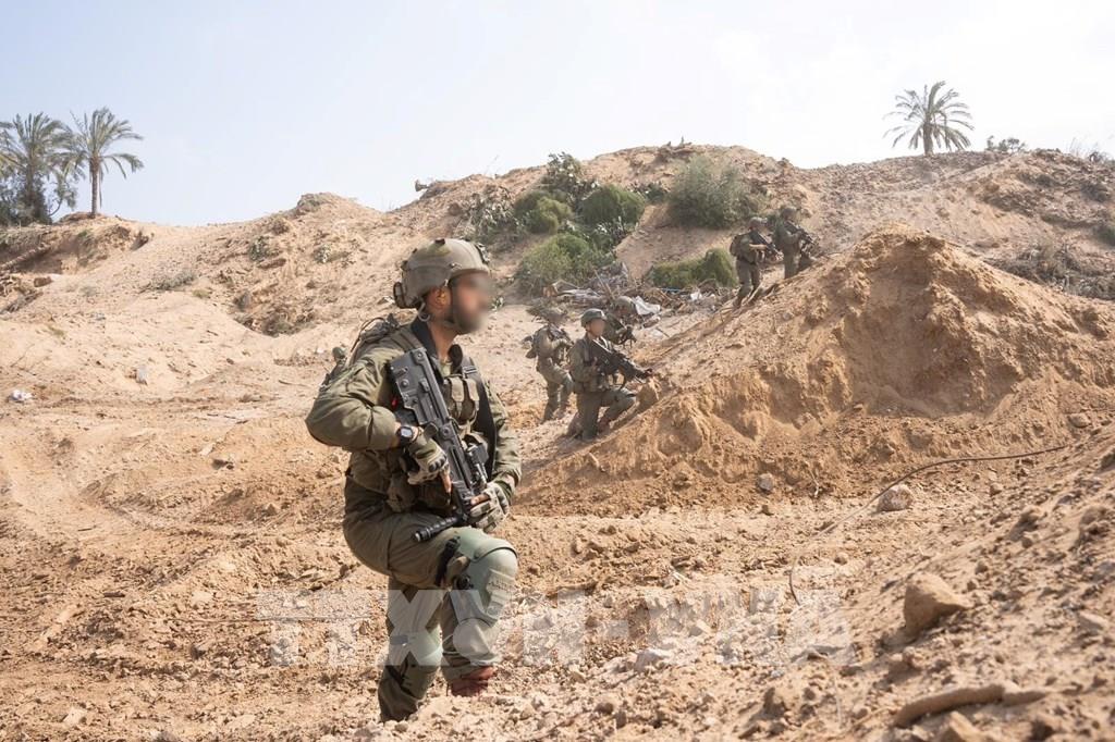 Truyền thông sở tại ngày 28/4/2024 đưa tin Tham mưu trưởng quân đội Israel Herzi Halevi đã phê duyệt kế hoạch tấn công trên bộ vào thành phố Rafah ở miền Nam Gaza. Ảnh: Binh sĩ Israel tham gia chiến dịch quân sự tại Dải Gaza ngày 25/4/2024. THX/TTXVN