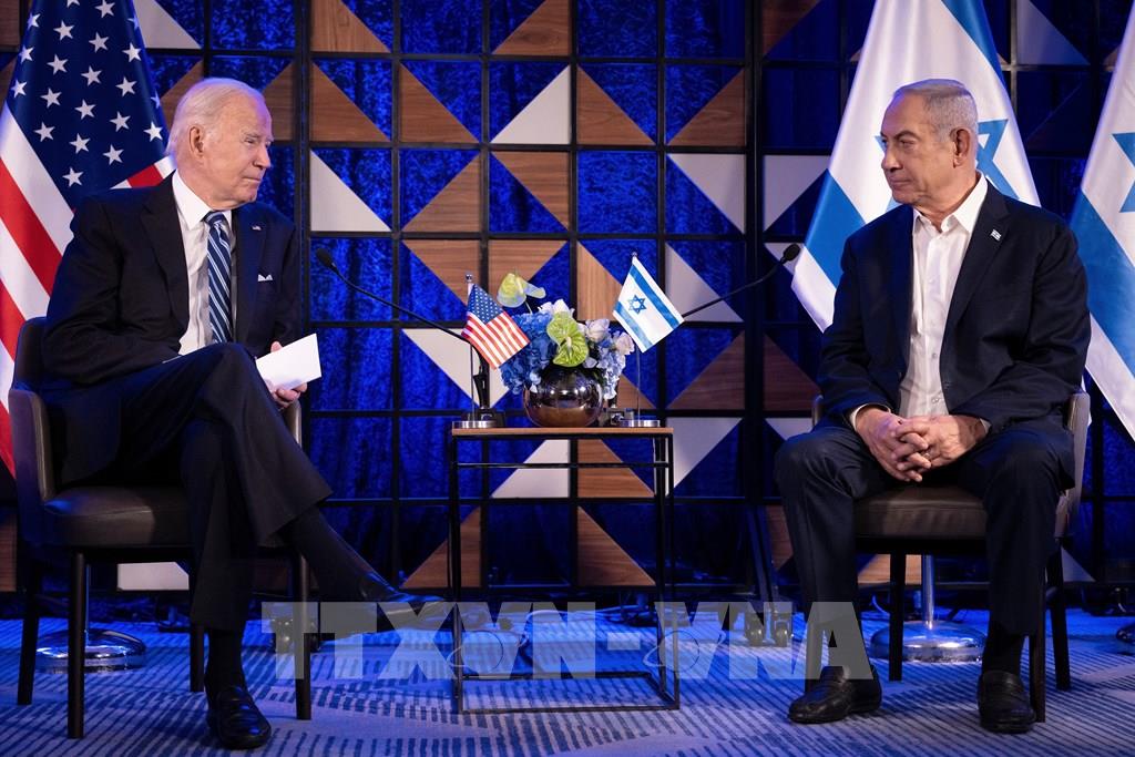 Nhà Trắng cho biết ngày 28/4/2024, Tổng thống Mỹ Joe Biden (trái) có cuộc điện đàm với Thủ tướng Israel Benjamin Netanyahu (phải), trong đó hai bên đã đánh giá lại tiến trình đàm phán hiện nay nhằm trả tự do cho các con tin mà Hamas cầm giữ, cùng với một lệnh ngừng bắn ngay lập tức tại Gaza. Ảnh: AFP/TTXVN