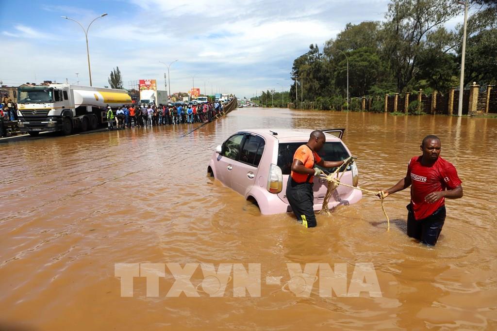 Mưa lũ khắc nghiệt thời gian gần đây đã cướp đi nhiều sinh mạng, gây thiệt hại kinh tế và nông nghiệp ở Đông Phi và một số khu vực thuộc bán đảo Arab. Sóng nhiệt mạnh cũng đang bao trùm các vùng rộng lớn của châu Á, gây rối loạn cuộc sống thường nhật và đe dọa nghiêm trọng đến sức khỏe cộng đồng. Ảnh: Ngập lụt tại Nairobi, Kenya ngày 1/5/2024. Ảnh: THX/TTXVN