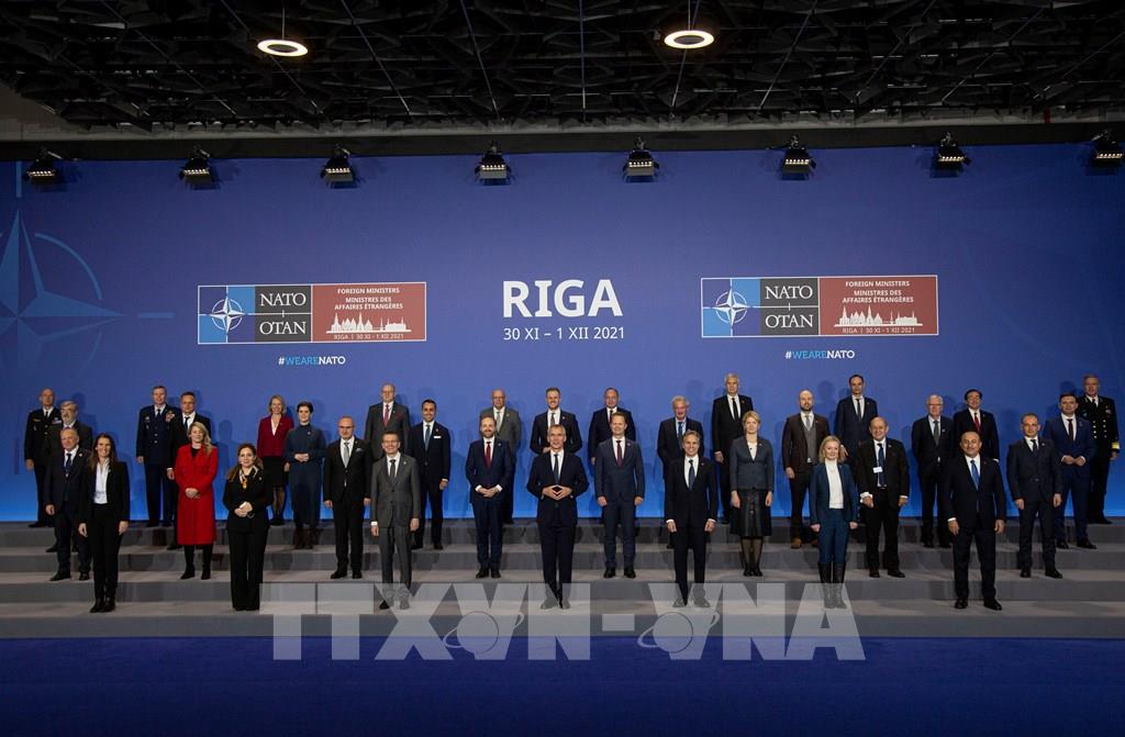 Ngày 30/11 - 1/12/2021, Ngoại trưởng của 30 quốc gia thành viên Tổ chức Hiệp ước Bắc Đại Tây Dương (NATO) đã nhóm họp thảo luận về Khái niệm Chiến lược Quân sự mới của liên minh quân sự này. Trong ảnh: Toàn cảnh Hội nghị Ngoại trưởng NATO ở Riga, Latvia, ngày 30/11/2021. Ảnh: AFP/ TTXVN