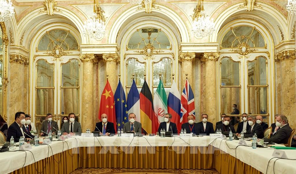 Đại sứ của Nga tại các tổ chức quốc tế ở Vienna (Áo) Mikhail Ulyanov ngày 29/11/2021 cho hay những cuộc gặp đầu tiên trong vòng đàm phán mới của Ủy ban chung (gồm Iran, Anh, Trung Quốc, Pháp, Nga và Đức) nhằm nối lại thỏa thuận hạt nhân Iran, hay còn gọi là Kế hoạch Hành động chung toàn diện (JCPOA), đã kết thúc và khởi đầu “một cách thành công mỹ mãn”. Đồng quan điểm với đại diện của Nga, Trưởng đoàn đàm phán hạt nhân Iran Ali Bagheri Kani cũng bày tỏ lạc quan về những cuộc gặp đầu tiên. Trong ảnh: Các đại biểu dự vòng đàm phán mới về vấn đề hạt nhân Iran ở Vienna, Áo ngày 29/11/2021. Ảnh: THX/TTXVN