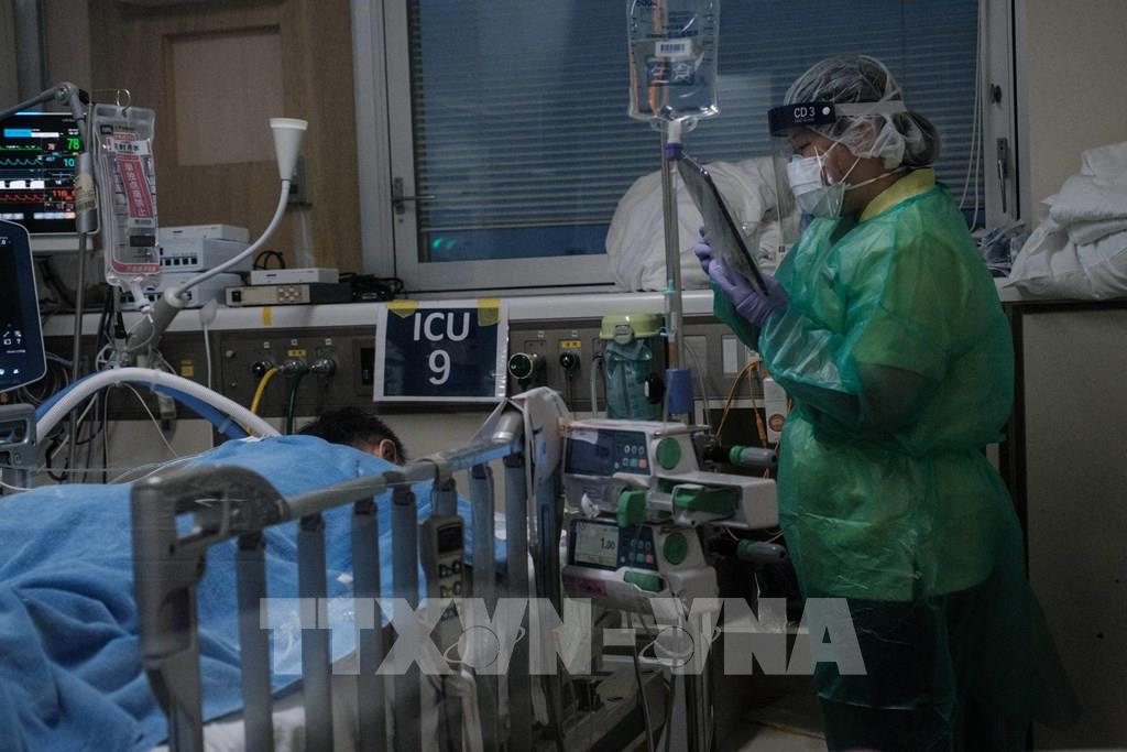 Một tuần sau khi các nhà khoa học Nam Phi thông báo phát hiện biến thể mới của virus SARS-CoV-2 mà Tổ chức Y tế thế giới (WHO) đặt tên là Omicron và xếp vào danh sách "biến thể đáng quan ngại" với số lượng đột biến rất cao và khả năng lây lan nhanh, ngoài châu Phi, các ca nhiễm biến thể này đã xuất hiện ở cả châu Á, châu Âu, châu Mỹ và châu Đại dương, dù rất nhiều nước đã áp dụng quy định cấm người từ khu vực miền Nam châu Phi nhập cảnh. Trong ảnh: Bệnh nhân COVID-19 được điều trị tại bệnh viện ở Yokohama, Nhật Bản. Ảnh: AFP/ TTXVN