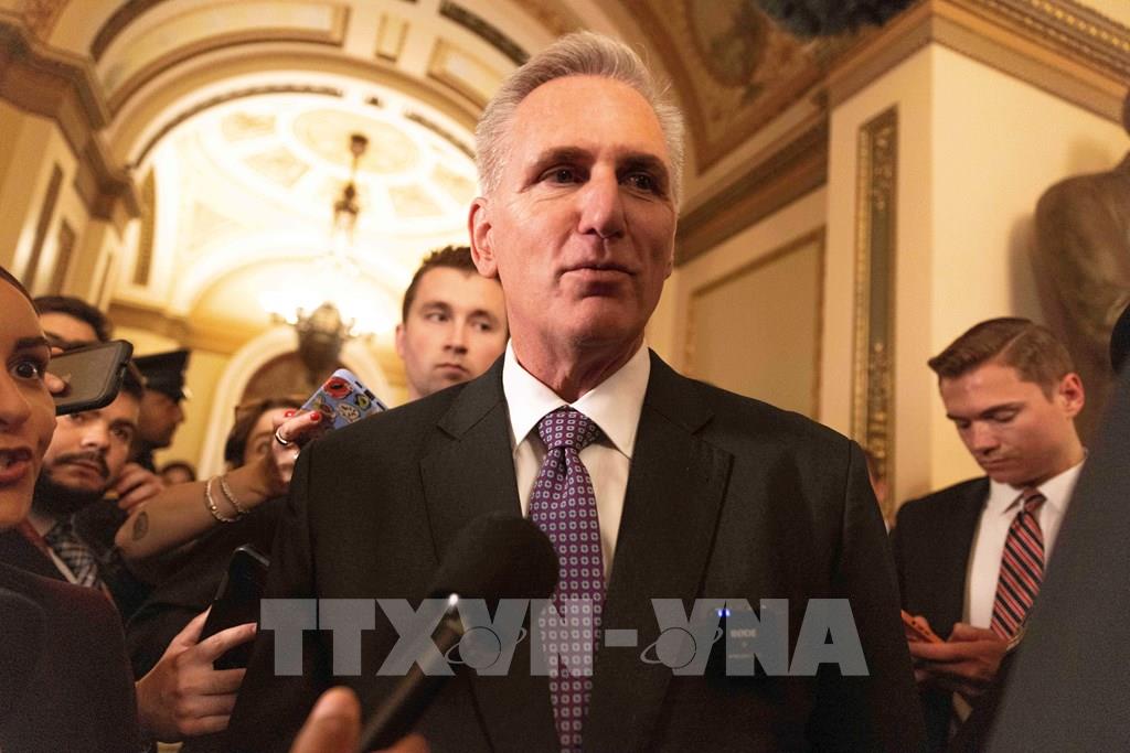 Ngày 31/5/2023, với 314 phiếu thuận và 117 phiếu chống, Hạ viện Mỹ đã phê chuẩn dự luật về trần nợ công trên cơ sở các nội dung được Tổng thống Joe Biden và Chủ tịch Hạ viện Kevin McCarthy nhất trí trước đó, sau nhiều tuần nỗ lực đàm phán. Dự luật sẽ được chuyển lên Thượng viện thảo luận và bỏ phiếu, có thể vào cuối tuần tới. Trong ảnh: Chủ tịch Hạ viện Mỹ Kevin McCarthy phát biểu với báo giới tại Washington, D.C., ngày 31/5/2023. Ảnh: THX/TTXVN
