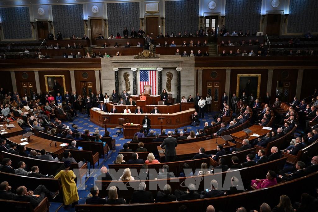 Ngày 31/5/2023, với 314 phiếu thuận và 117 phiếu chống, Hạ viện Mỹ đã phê chuẩn dự luật về trần nợ công trên cơ sở các nội dung được Tổng thống Joe Biden và Chủ tịch Hạ viện Kevin McCarthy nhất trí trước đó, sau nhiều tuần nỗ lực đàm phán. Dự luật sẽ được chuyển lên Thượng viện thảo luận và bỏ phiếu, có thể vào cuối tuần tới. Trong ảnh (tư liệu): Toàn cảnh một phiên họp Hạ viện Mỹ ở Washington, DC, ngày 5/1/2023. Ảnh: AFP/TTXVN