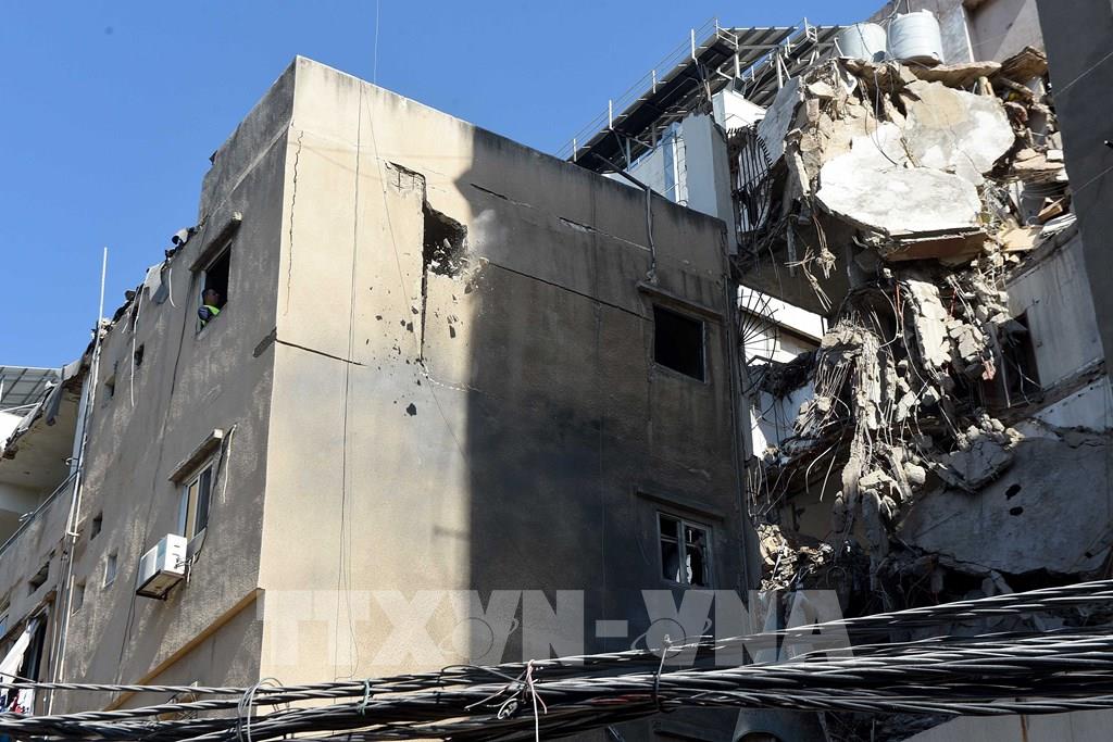 Tòa nhà bị phá hủy sau cuộc tấn công của Israel xuống Dahieh, ngoại ô Beirut, Liban, ngày 31/7/2024. Ảnh: THX/TTXVN