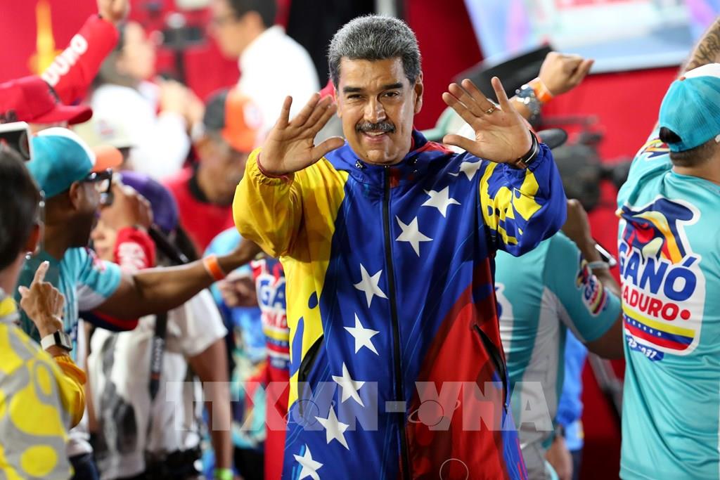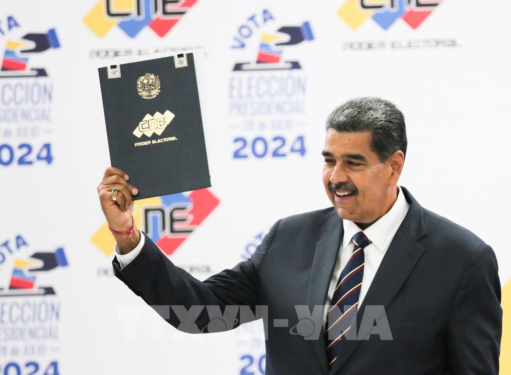 Ngày 29/7/2024, Hội đồng Bầu cử Quốc gia Venezuela đã công bố kết quả bầu cử, trong đó Tổng thống đương nhiệm Nicolas Maduro, 61 tuổi, tái đắc cử nhiệm kỳ thứ 3 liên tiếp, với 51,2% phiếu ủng hộ. Ảnh: THX/TTXVN