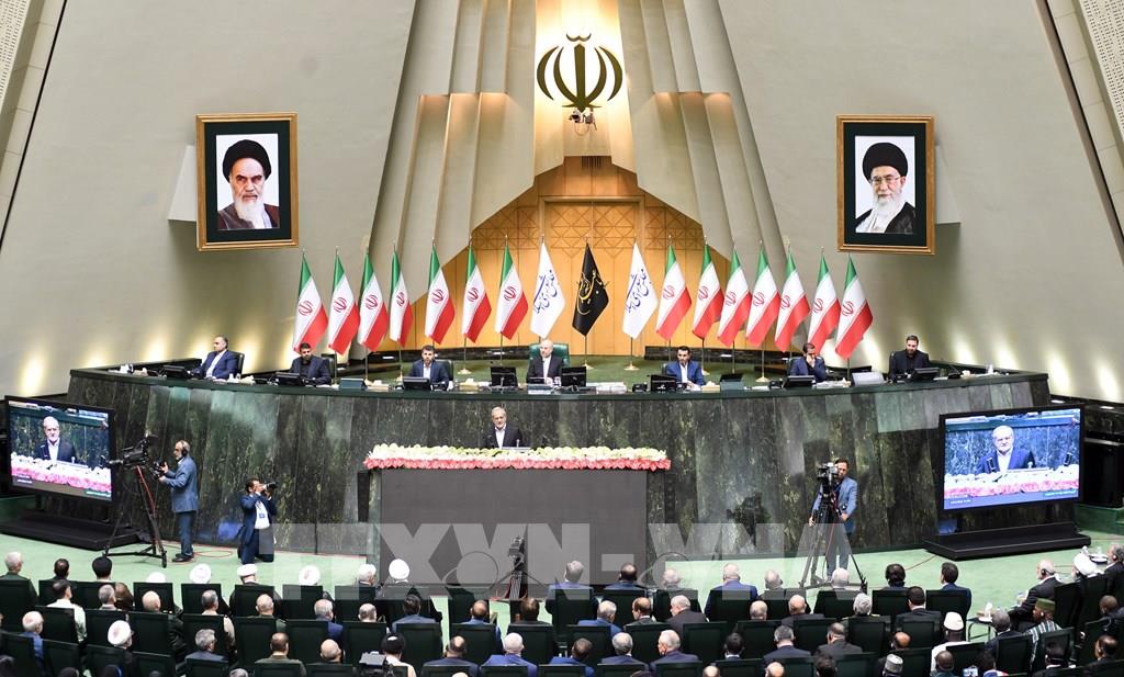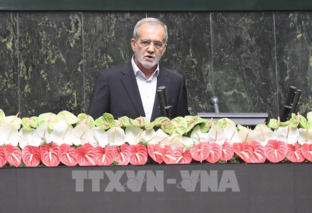 Ngày 30/7/2024, ông Masoud Pezeshkian tuyên thệ nhậm chức Tổng thống thứ 9 nước Cộng hòa Hồi giáo Iran. Phát biểu trong buổi lễ được phát trực tiếp trên truyền hình quốc gia, ông Pezeshkian bày tỏ cam kết "bảo vệ tôn giáo chính thức, hệ thống Cộng hòa Hồi giáo Iran và Hiến pháp của đất nước". Ảnh: THX/TTXVN