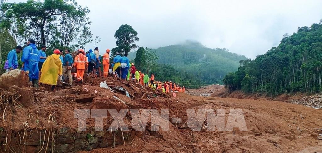 Ít nhất 256 người đã thiệt mạng trong các vụ lở đất liên tiếp xảy ra do mưa lớn ngày 30/7/2024 ở khu vực đồi núi thuộc bang Kerala, miền Nam Ấn Độ. Đây là một trong những thảm kịch tồi tệ nhất mà bang này từng trải qua. Trong ảnh: Lực lượng cứu hộ làm nhiệm vụ tại hiện trường lở đất ở bang Kerala, Ấn Độ, ngày 1/8/2024. Ảnh: THX/TTXVN