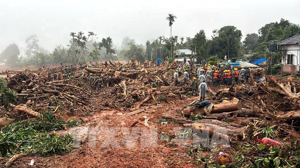Ít nhất 256 người đã thiệt mạng trong các vụ lở đất liên tiếp xảy ra do mưa lớn ngày 30/7/2024 ở khu vực đồi núi thuộc bang Kerala, miền Nam Ấn Độ. Đây là một trong những thảm kịch tồi tệ nhất mà bang này từng trải qua. Trong ảnh: Hiện trường lở đất ở bang Kerala, Ấn Độ, ngày 30/7/2024. Ảnh: THX/TTXVN