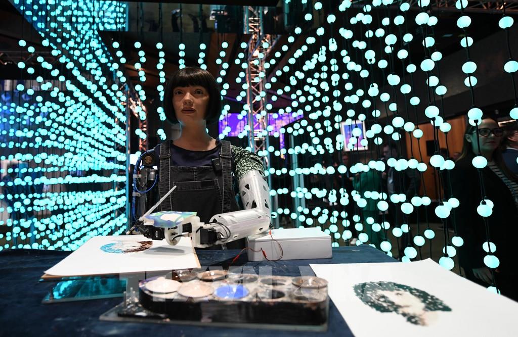 Ngày 1/8/2024, Liên minh châu Âu (EU) chính thức "kích hoạt" đạo luật mang tính bước ngoặt trong công tác quản lý trí tuệ nhân tạo (AI) mà khối này kỳ vọng sẽ bảo vệ quyền công dân trong khi vẫn thúc đẩy đổi mới sáng tạo. Trong ảnh (tư liệu): Robot trí tuệ nhân tạo vẽ tranh tại Hội nghị Cấp cao Toàn cầu về Những Triển vọng Tốt đẹp từ AI, ở Geneva, Thụy Sĩ, ngày 30/5/2024. Ảnh: THX/TTXVN