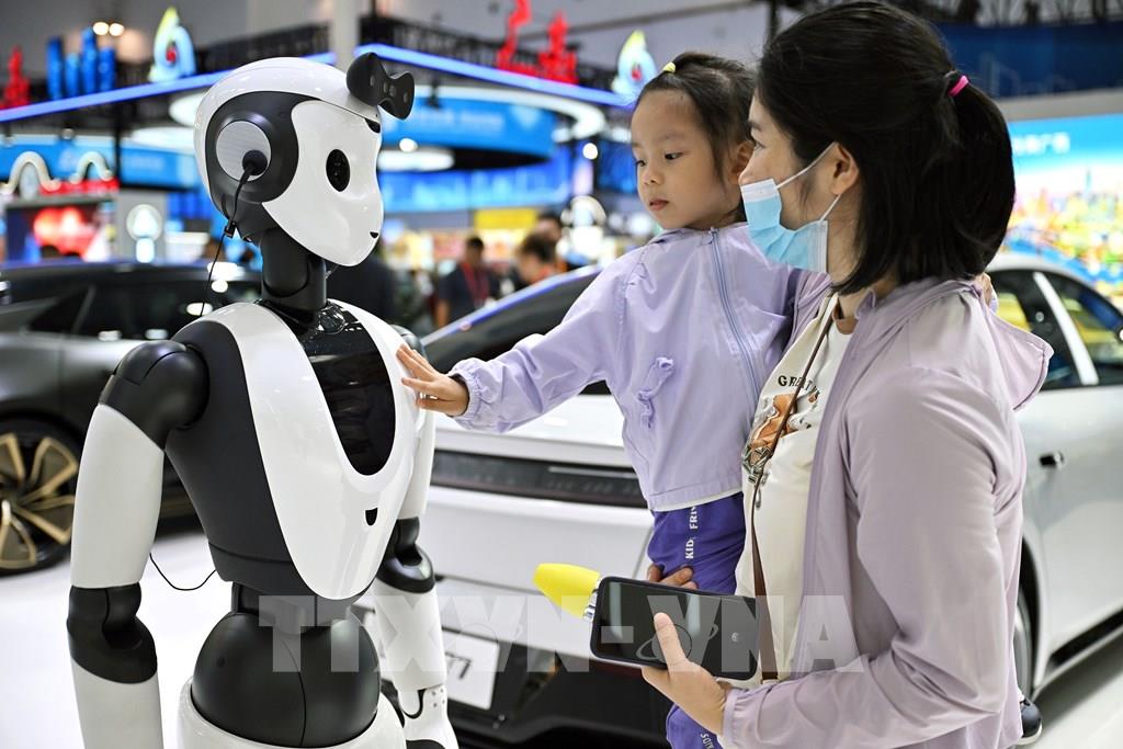 Ngày 1/8/2024, Liên minh châu Âu (EU) chính thức "kích hoạt" đạo luật mang tính bước ngoặt trong công tác quản lý trí tuệ nhân tạo (AI) mà khối này kỳ vọng sẽ bảo vệ quyền công dân trong khi vẫn thúc đẩy đổi mới sáng tạo. Trong ảnh (tư liệu): Khách hàng tương tác với robot trí tuệ nhân tạo. Ảnh: THX/TTXVN