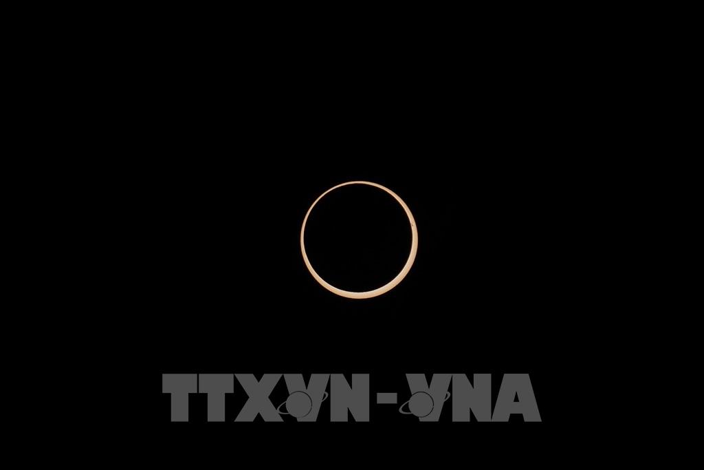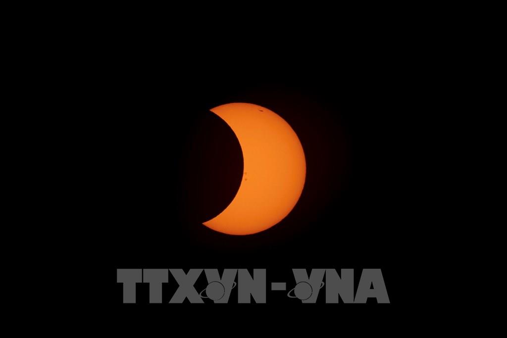 Ngày 2/10/2024, người dân ở các tỉnh miền Nam Argentina và Chile đã có dịp chiêm ngưỡng hiện tượng nhật thực toàn phần, một hiện tượng thiên văn kỳ thú khi Mặt Trăng đi qua giữa Trái Đất và Mặt Trời. Trong ảnh: Hiện tượng nhật thực trên bầu trời tại Buenos Aires, Argentina, ngày 2/10/2024. Ảnh: THX/TTXVN