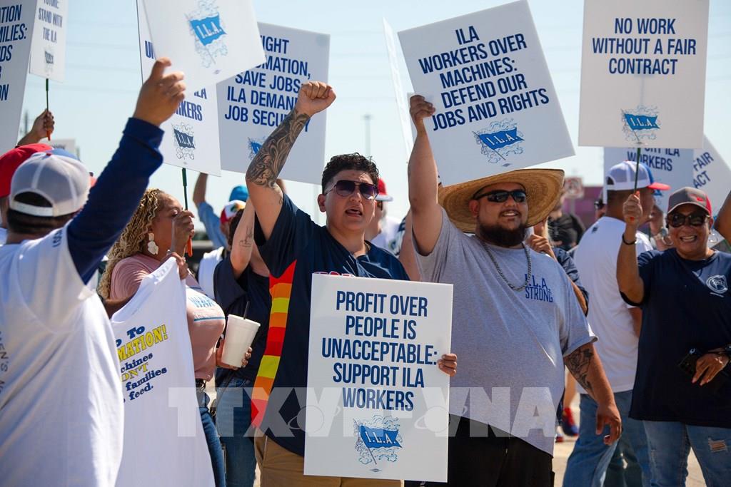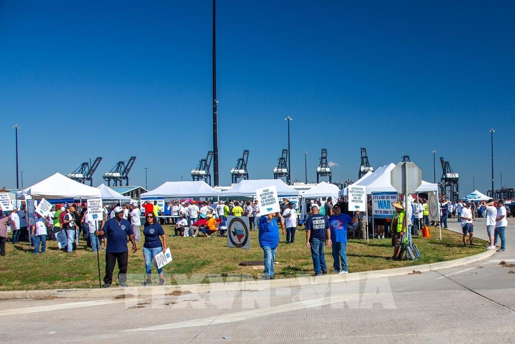 Nhân viên cảng Houston, bang Texas, Mỹ, tham gia đình công ngày 1/10/2024. Ảnh: THX/TTXVN