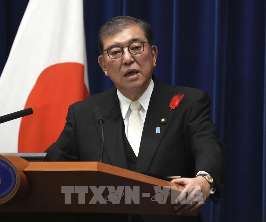 Ngày 1/10/2024, Quốc hội Nhật Bản đã họp phiên bất thường và bầu Chủ tịch đảng Dân chủ Tự do (LDP) Shigeru Ishiba làm Thủ tướng thứ 102 của nước này. Theo kết quả cuộc bỏ phiếu, ông Shigeru Ishiba nhận được 291 trong tổng số 461 phiếu hợp lệ tại Hạ viện. Trong ảnh: Tân Thủ tướng Nhật Bản Shigeru Ishiba trong cuộc họp báo sau lễ tuyên thệ nhậm chức tại Tokyo, ngày 1/10/2024. Ảnh: Kyodo/TTXVN