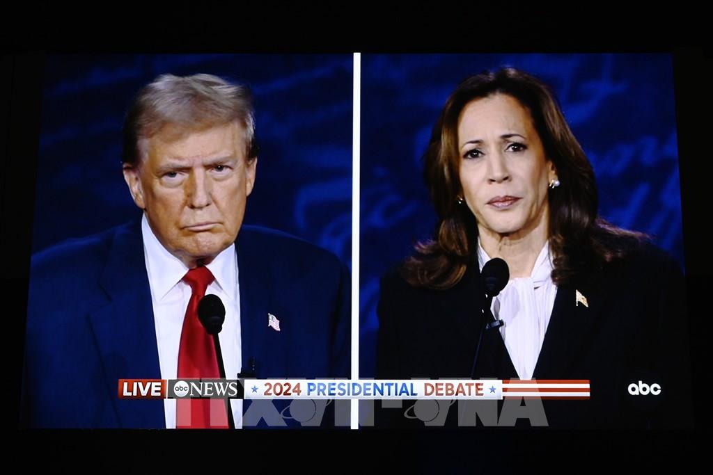 Theo các kết quả khảo sát mới nhất, hai ứng cử viên Tổng thống Mỹ, ông Donald Trump của đảng Cộng hòa và bà Kamala Harris của đảng Dân chủ đang bám đuổi rất sát tại North Carolina, một trong 7 bang chiến địa trong cuộc bầu cử sắp tới. Trong ảnh: Phó Tổng thống Mỹ Kamala Harris (phải) và cựu Tổng thống Donald Trump trong cuộc tranh luận trực tiếp ở Philadelphia, Mỹ, ngày 10/9/2024. Ảnh: THX/TTXVN