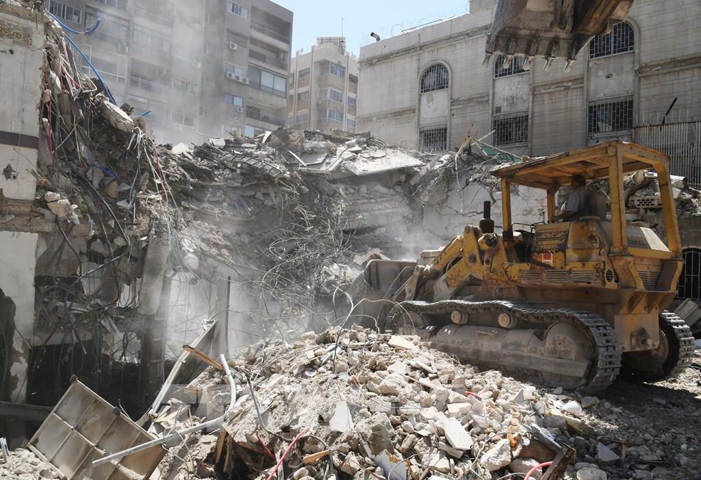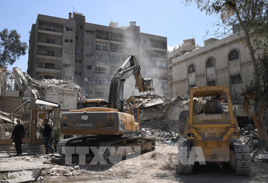 Khu vực Trung Đông vốn bất ổn nay càng thêm căng thẳng khi ngày 1/4/2024, Israel tiến hành vụ không kích vào tòa nhà lãnh sự Iran ở thủ đô Damascus của Syria (ảnh), khiến chỉ huy cấp cao của lực lượng Quds thuộc Lực lượng Vệ binh Cách mạng Hồi giáo Iran (IRGC) cùng một số nhà ngoại giao thiệt mạng. Iran tuyên bố sẽ đáp trả mạnh mẽ. Trong khi đó, ngày 3/4, quân đội Israel cũng không kích nhầm vào chiếc xe của tổ chức viện trợ lương thực World Central Kitchen (Mỹ), làm 7 thành viên WCK thiệt mạng. Cộng đồng quốc tế đã lên án các vụ tấn công này. Ảnh: THX/TTXVN