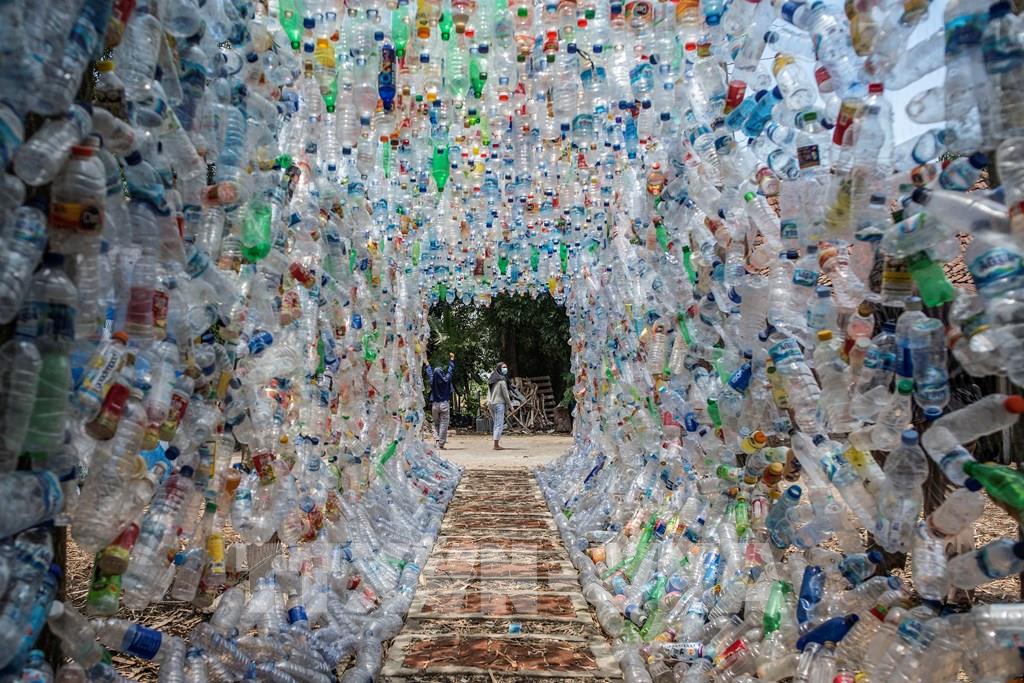Nhằm gửi đi thông điệp về cuộc khủng hoảng rác thải nhựa đang ngày một trầm trọng hơn trên các đại dương, các nhà bảo vệ môi trường ở Indonesia đã lập ra một bảo tàng được làm hoàn toàn bằng nhựa tại thị trấn Gresik ở phía Đông đảo Java của Indonesia. Để có được bảo tàng trên, các nhà bảo vệ môi trường đã mất 3 tháng để "lắp ráp" hơn 10.000 vật dụng bằng nhựa, được thu gom từ các con sông và bãi biển bị ô nhiễm. Ảnh: AFP/ TTXVN